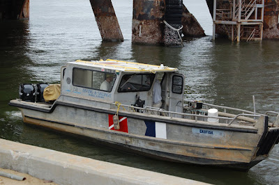 Here we are again today in port in Alabama. I woke up at 5:51am, just in time to get out on my watch shift at 6am. It was rather cold, low 60s. But it was cool getting to see the Olympic Triton pulling away, turning around, and backing back in at the dock. We really only had one exciting thing happen today, we were visited by some salvage divers who came to inspect the equipment on the underside of our ship (echo-sounder, current-meter, etc.). So there you have it, enjoy the pics!